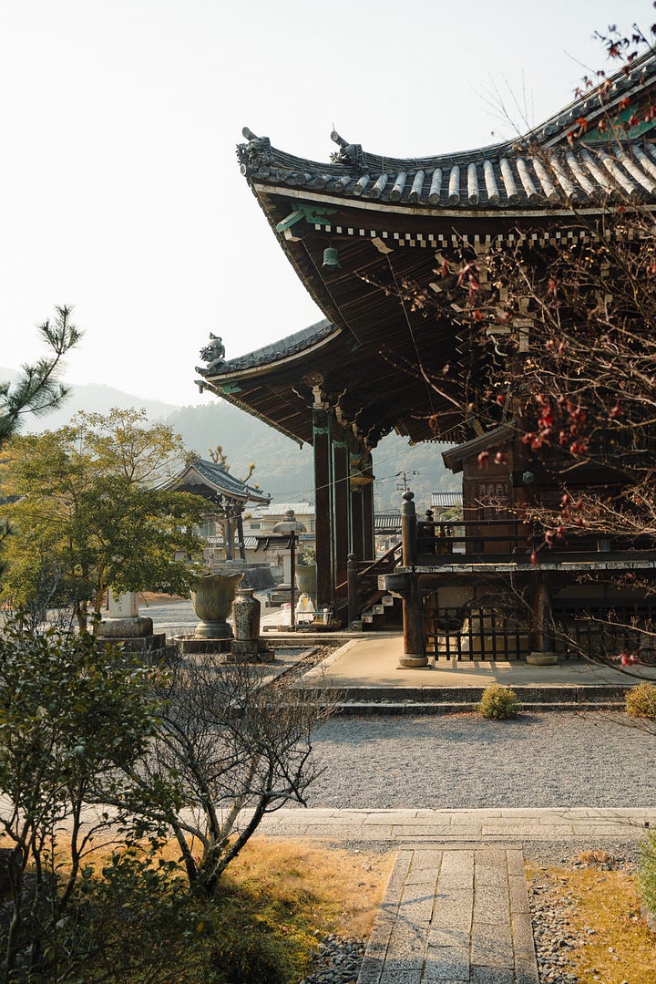 Evening in Arashiyama - We wandered around without much of an agenda until sunset. We stopped in a few of the less-touristy temples, like Seiryōji Temple and Shokaku-ji Temple, which were pleasantly empty after the chaotic crowds in the bamboo grove. Even the Saga Toriimoto Preserved Street was totally dead in the evening.