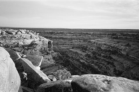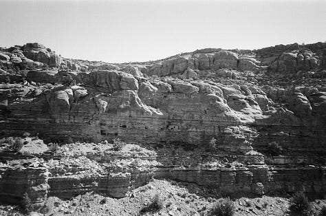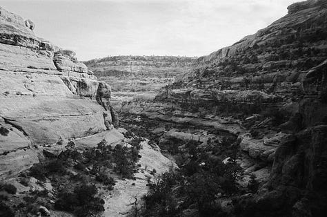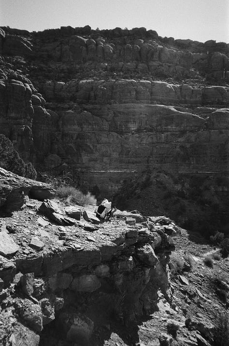 To grapple with this existential crisis, I went to Cedar Mesa for the first time since we left Moab. I was looking for a pot a friend heard rumors of “in a prominent alcove in a ruin that looks hard to access and with a catwalk.” That describes a lot of ruins, realistically, and doesn’t narrow down if it’s accessed from the rim or from the bottom, where I was backpacking.